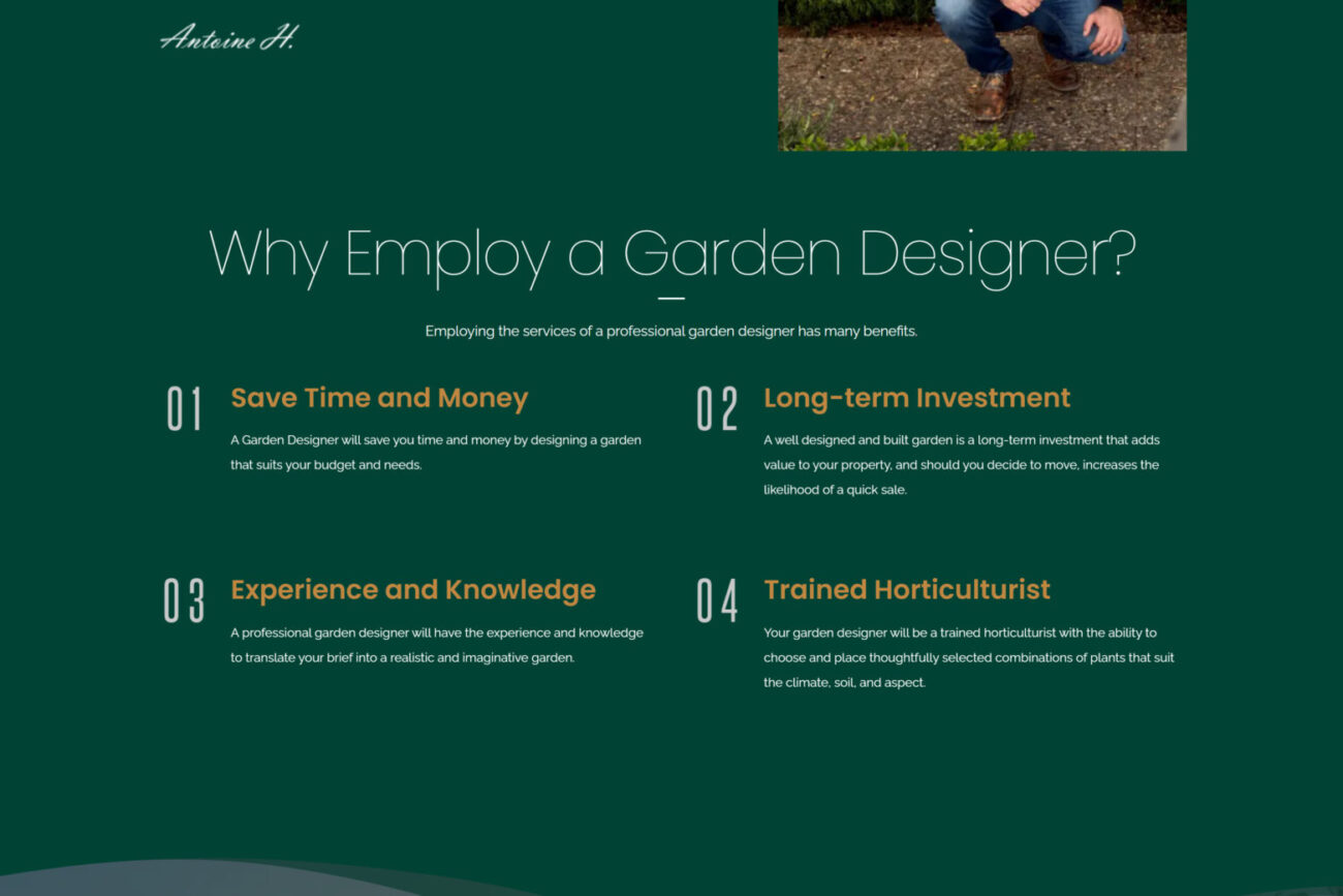 Antoine takes a thoughtful and attentive approach when it comes to his clients’ gardening needs. He understands that each garden is unique, and as such, he carefully listens to his clients’ requirements regarding functionality, design, and planting.